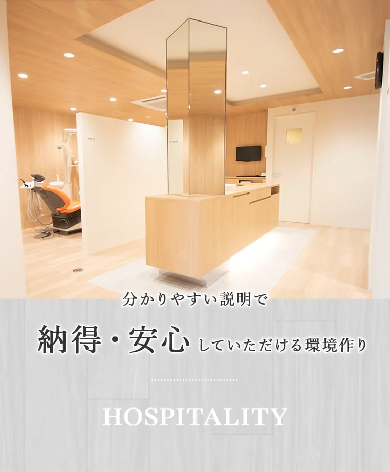 歯医者が苦手な方にも安心して通っていただけるよう、表面麻酔・電動麻酔器・極細注射針を使用し、痛みをできる限り軽減しています。スタッフ全員が「やさしく声をかける治療」を心がけ、まるでカフェで過ごすような落ち着いた気持ちで診療を受けていただけるように努めています。